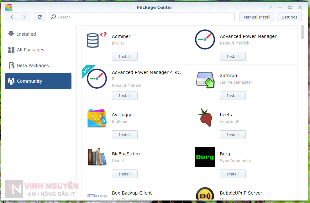 - Sau khi thêm nguồn xong thì các ứng dụng của các nguồn đã thêm hiện ở mục Community trong Package Center.