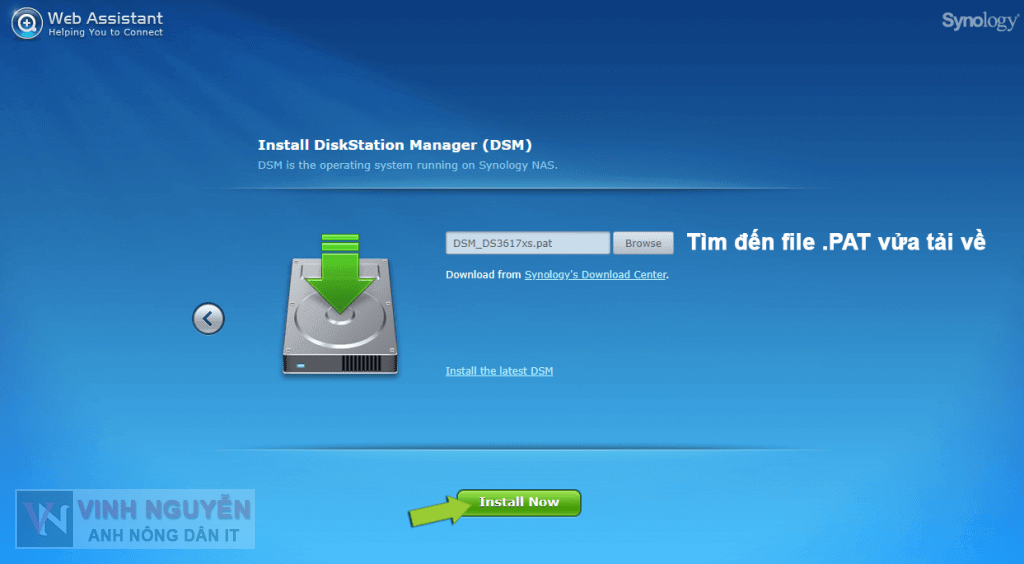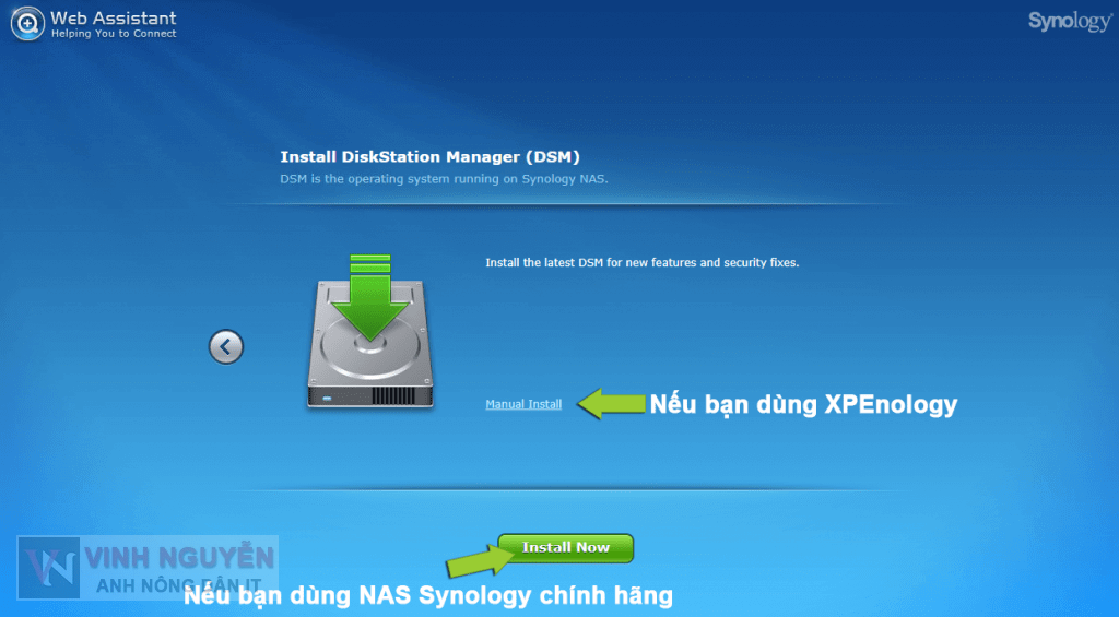 Bạn dùng NAS Synology chính hãng click luôn vào Instal Now, hệ thống sẽ tự động tải về cho bạn.