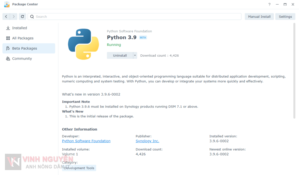 Với Webstation thì giờ đây bạn có thể lập trình Web với ngôn ngữ Python. Ở thời điểm này Web Station đang hỗ trợ Python 3.9. Mình thì không biết gì về Python lên cũng không biết nói và đánh giá gì thêm