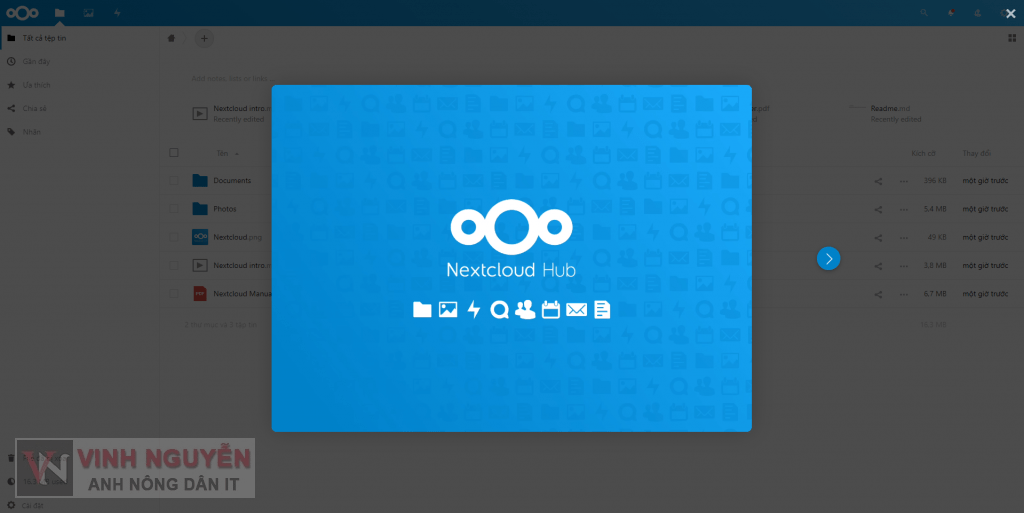 Sau khi cài đặt xong, bạn tiến hành đăng nhập vào tài khoản vừa tạo và sử dụng NextCloud