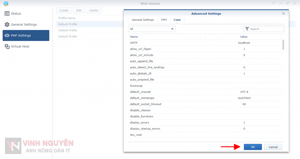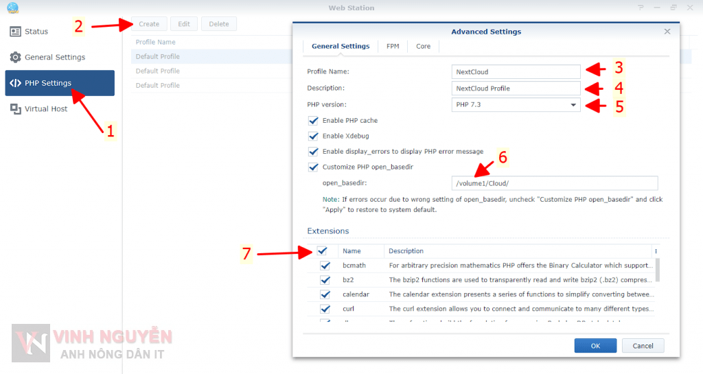 Khi cài đặt trên Synology NAS bạn cần cấu hình PHP riêng, chính vì vậy mình khuyên bạn lên dùng Virtual Host để không ảnh hưởng đến các dự án web khác của bạn.