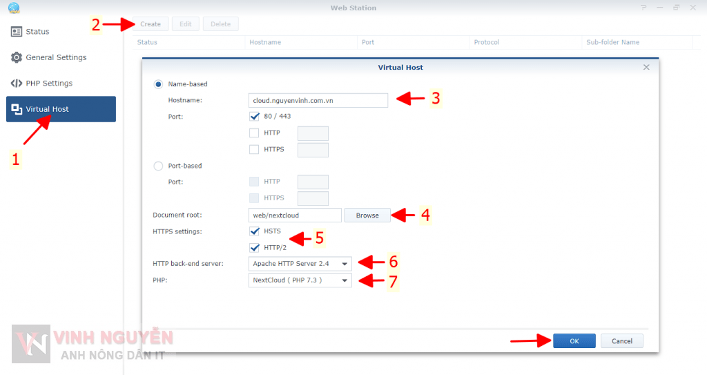 Bước 3: Tạo Virtual Host – Cấu hình Web Station.