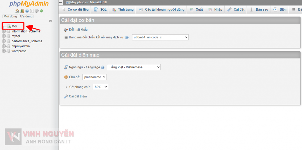 Bạn vào Main Menu mở ứng dụng phpMyAdmin. Xem hướng dẫn tại đây nếu bạn chưa cài phpMyAdmin.