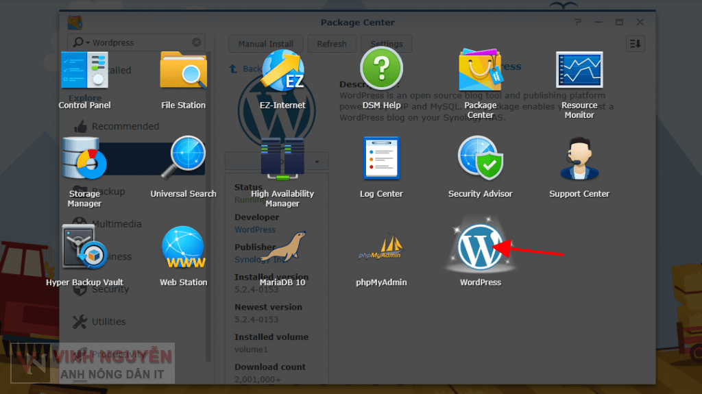 - Lên Google tìm hiểu cách sử dụng WordPress nếu không rõ. Mình chia sẻ cách cài đặt trên Synology NAS – XPEnology thôi.