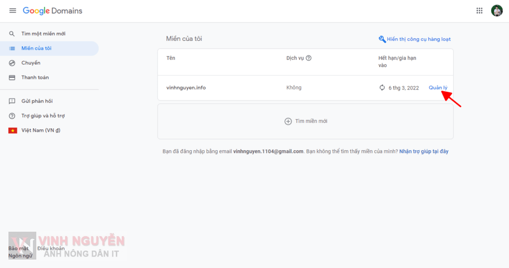 - Đăng nhập vào Google Domains.