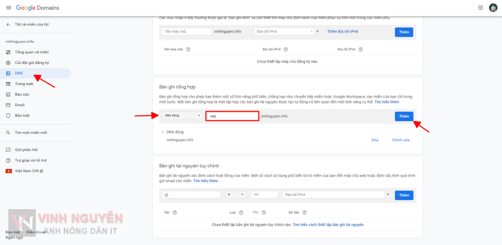 Bước 1. Thiết lập trên Google Domains.