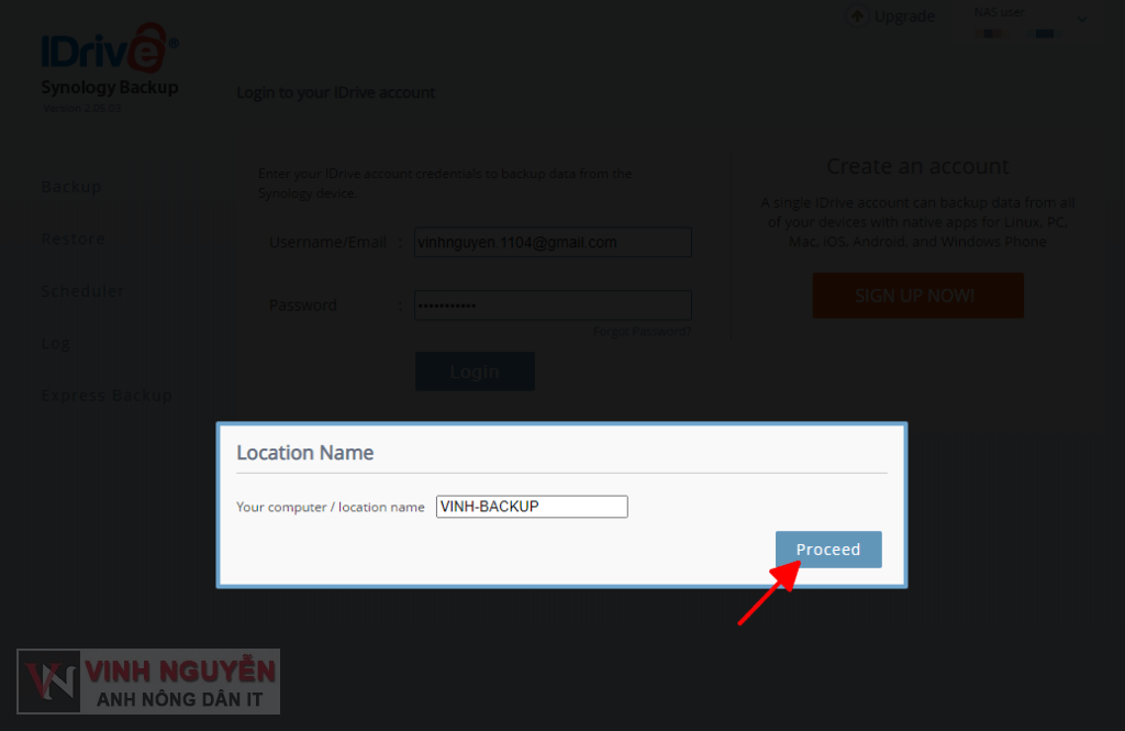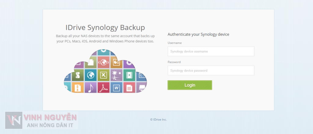- Tiếp theo là đăng nhập với tài khoản IDrive của bạn.