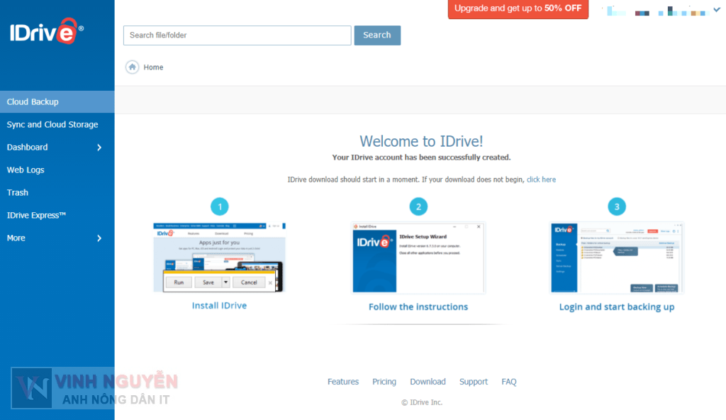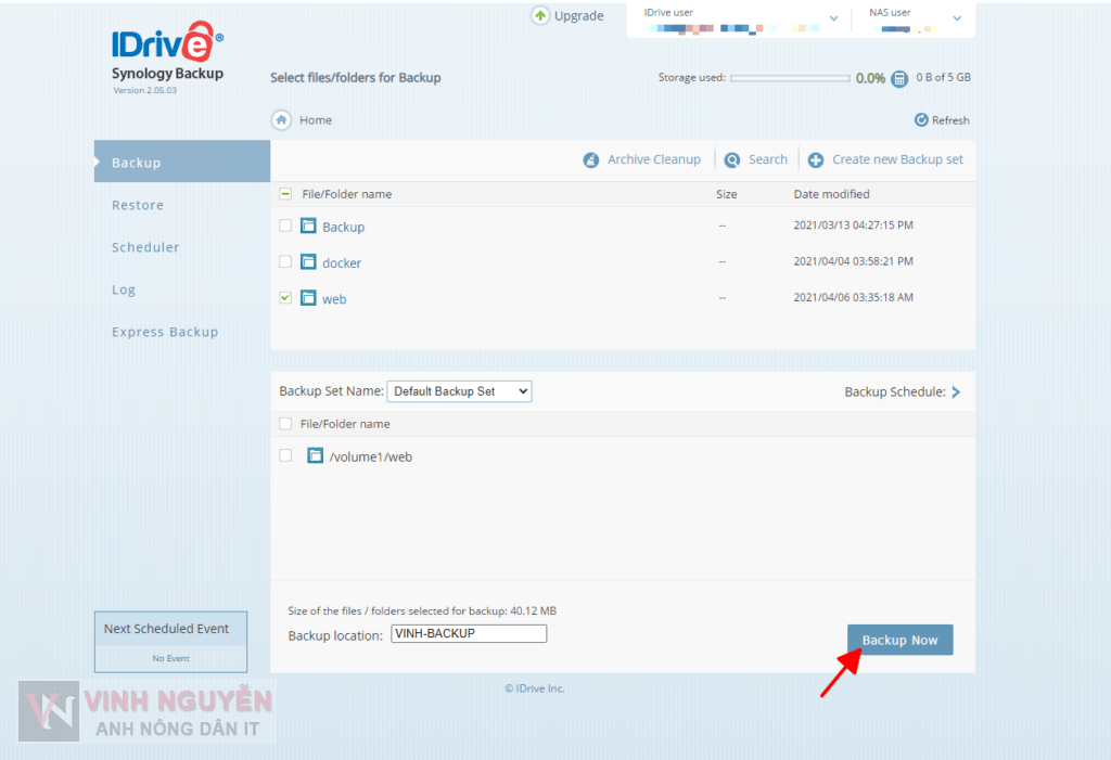 Đối với mình thì IDrive mình dùng để lưu trữ thư mục dữ liệu web. 5GB cơ bản là đủ dùng