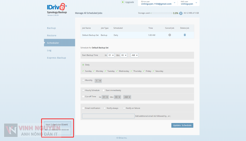 Đối với Synology NAS hoặc thiết bị chạy XPEnology sẽ có rất nhiều phương án để bạn backup dữ liệu. Ngon nghẻ và dễ dùng thì có ứng dụng cây nhà lá vườn của Synology là Heyper Backup, giúp backup dữ liệu của NAS lên nhiều nguồn khác… (mình sẽ có bài viết nói sau). Ở note này mình sẽ chia sẻ một cách nữa thông qua IDrive. Oke… bắt đầu thôi.