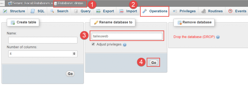 - (3) Nhập tên mới của database (ví dụ: tailieuweb).