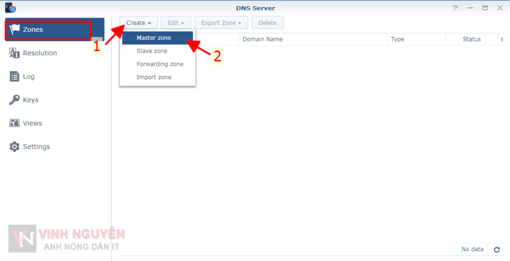 - Tại cửa sổ Create a master zone bạn điện các thông số như sau.