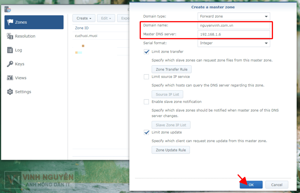 - Master DNS server: Nhập luôn IP NAS trong mạng Lan của bạn.