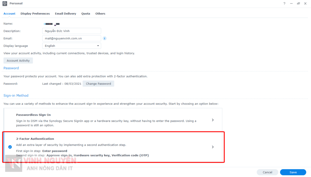 - (2) 2-Factor Authentication – Tăng bảo mật hơn với đăng nhập xác thực 2 bước.