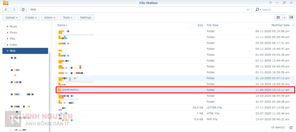 Sau khi cài đặt xong phpMyAdmin tại thư mục web sẽ có thêm một thư mục phpMyAdmin.