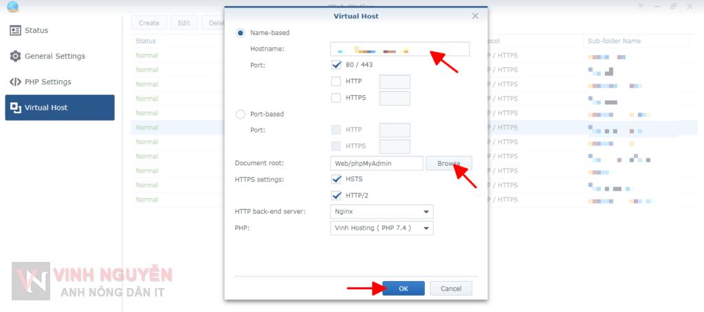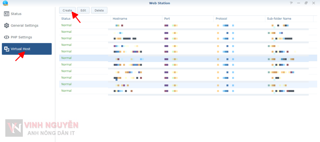 Bạn vào ứng dụng Web Station => Virtual Host. Bạn tạo mới một Vitrual Host như hình dưới.