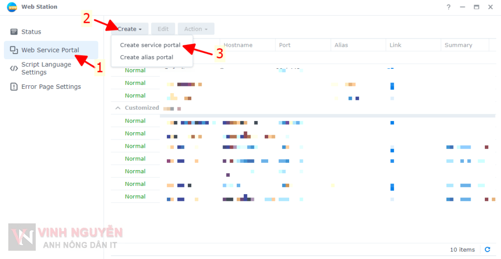 Bạn mở Web Station => Web Service Portal => Create Service Portal => Package Service Portal => chọn phpMyAdmin và tiến hành thiết lập.