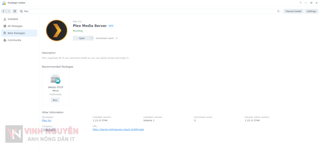 Plex đã chính thưc hỗ trợ Plex Media Server trên DSM 7 với ver 1.22.1.4228. Các bạn vào đây để tải về, tiến hành cài đặt thủ công bình thường. Xem hướng dẫn cách cài đặt thủ công ứng dụng tại đây.