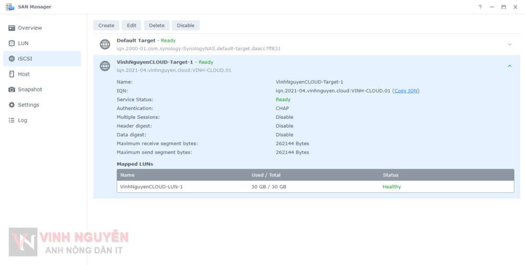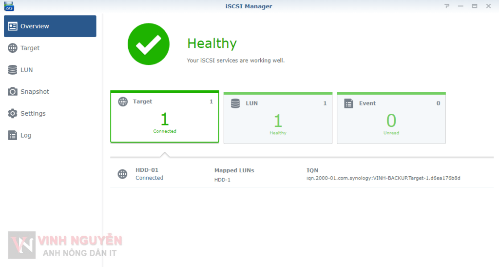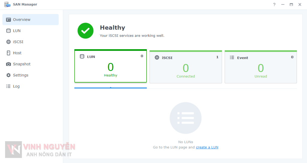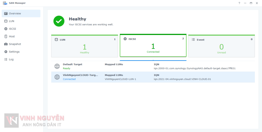 Đối với San Manager – iSCSI Target (trên DSM 7) thì hệ thống tạo sẵn cho bạn Default Target bạn chỉ cần tạo LUN rồi map vào là được. Nhưng note này mình sẽ hướng dẫn làm từ đầu mà không dùng Default Target có sẵn.