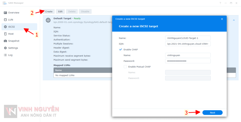 I. Tạo iSCSI Target trên Synology NAS.