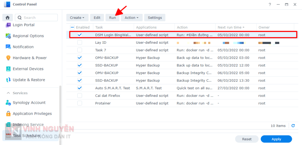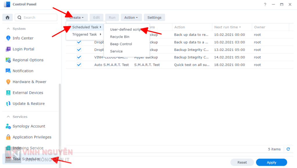 Để dùng tool này các bạn dùng chức năng Task Scheduler trong Contol Panel. Áp dụng cho cả Synology NAS và XPEnology đều chạy tốt…