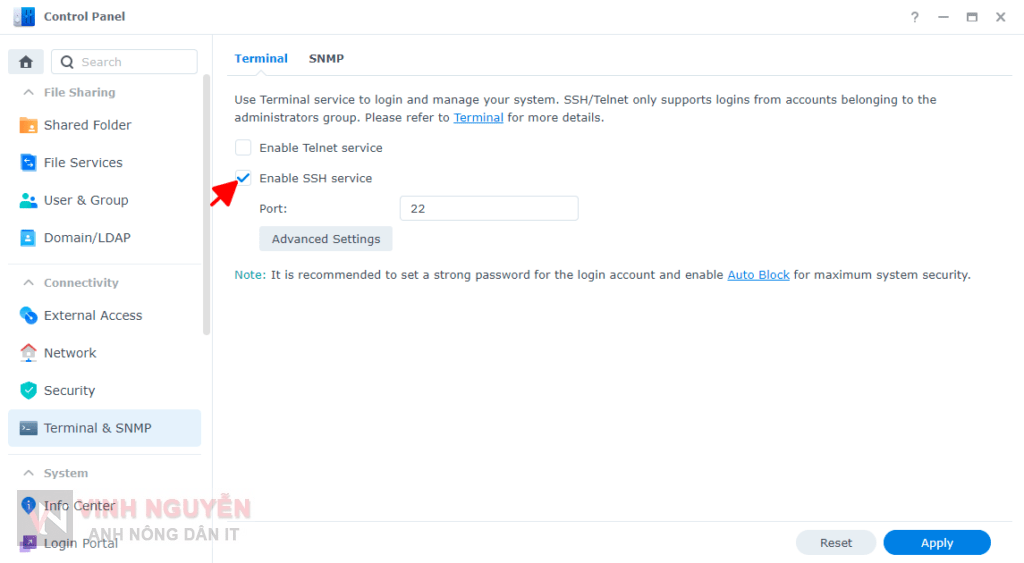 Bật SSH Service.
