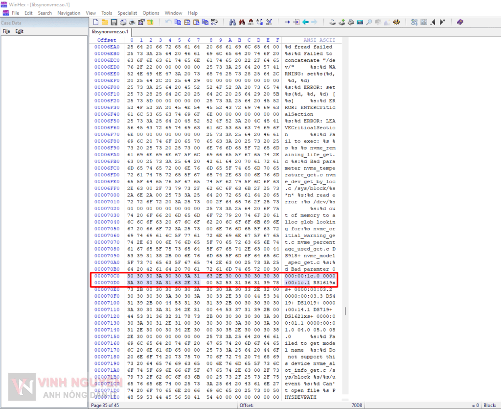 Mở file libsynonvme.so.1 trong WinHex. Bạn tìm đến vị chí lưu đường dẫn PCI NVMe của DS918+, dữ liệu ban đầu là 0000:00:13.0 và 0000:00:13.1, sửa đổi thành vị trí PCI đã ghi nhở ở trên 0000:00:1c.0 và 0000:00:1c.1 (của mình mình có 1 ổ NVMe nhưng để cẩn tắc mình sửa thêm vị trí ổ nữa là 0000:00:1c.1